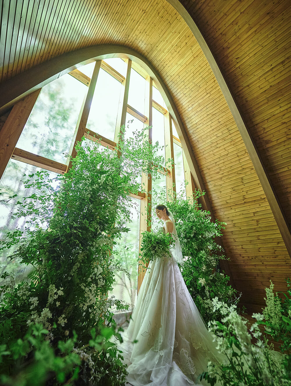 全国的にも珍しい木造のチャペルは温もり溢れる特別な空間。大切な人たちからの祝福をそばに感じながら、陽光がふたりの門出を優しく包み込む。気取らず構えずふたりらしく未来を誓う場所。
