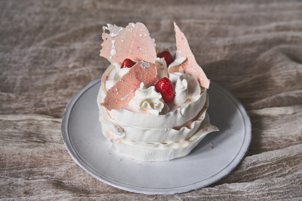生クリームで囲むデコレーションは会場のシンボルリースをモチーフに「結婚式だけでなくいつでも帰ってきてもらえる特別な場所でありたい」という願いを込め、ほどよく酸味をきかせたラズベリーとハスカップの輝きは、大切な人と囲む食卓に飾るあたたかなキャンドルの灯りを表現しました。